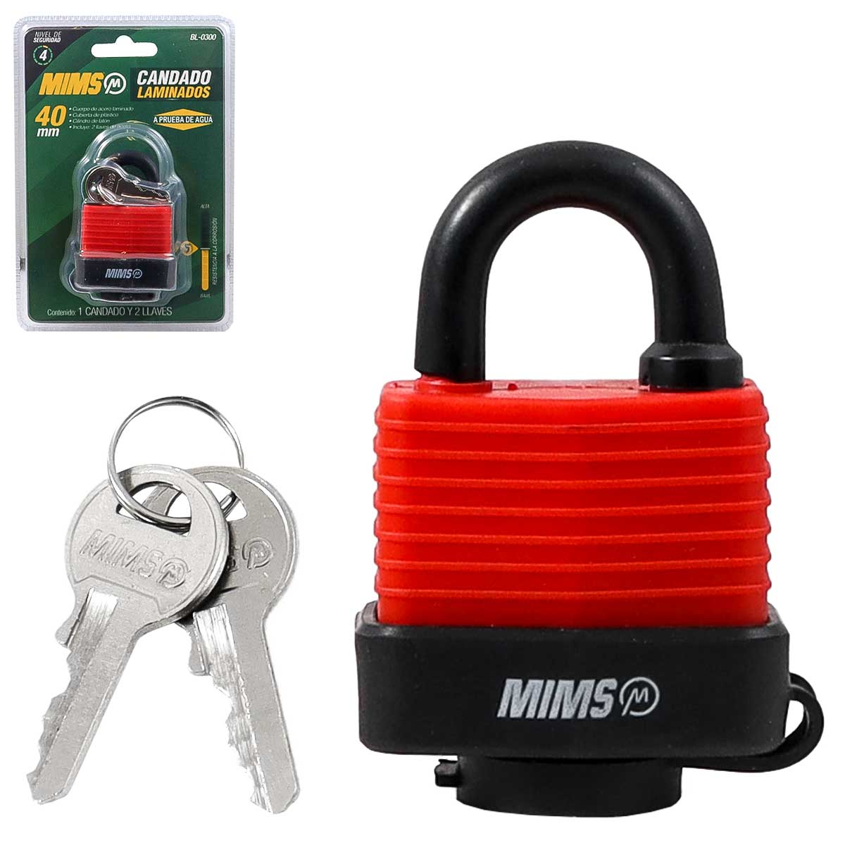JGO. DE 4 CANDADOS DE ACERO CUERPO LAMINADO 50MM C/8 LLAVES