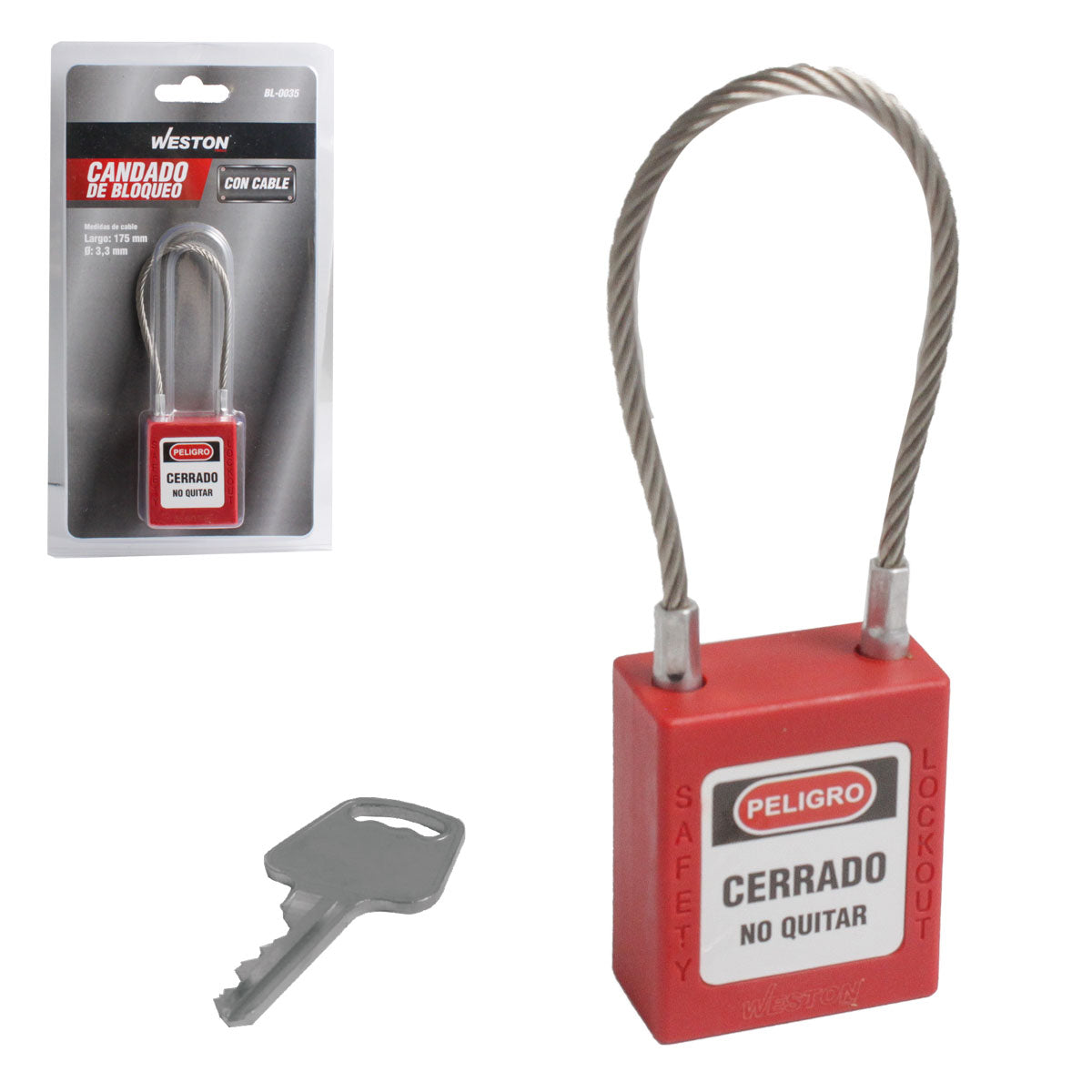 CANDADO DE BLOQUEO ROJO CON CABLE 175MM